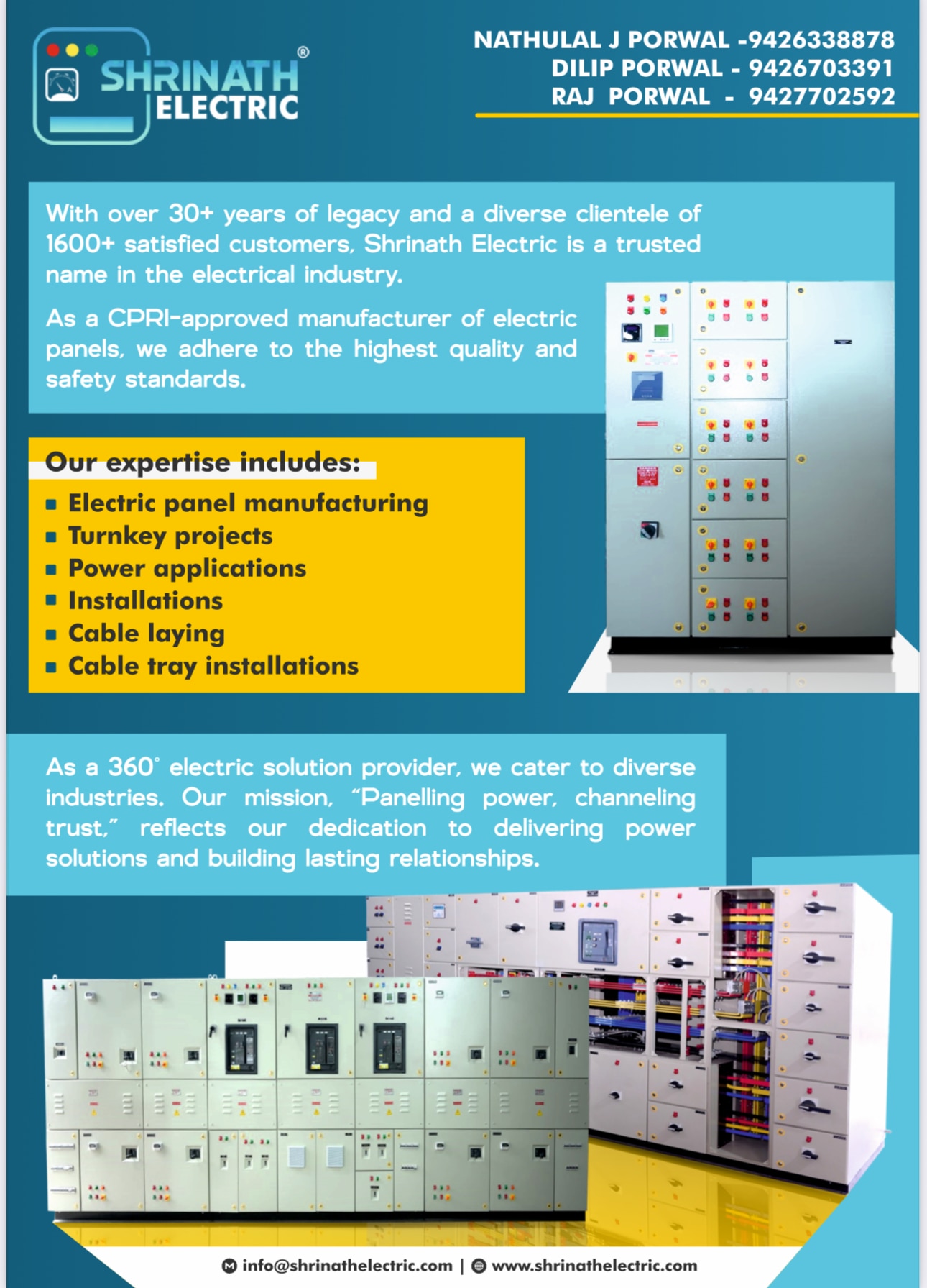 245 KVAR APFC PANEL A 245 KVAR APFC (Automatic Power Factor Correction) Panel is an electrical control panel used to improve power factor in industrial and commercial installations. It helps reduce power losses, avoids penalties from electricity boards, and increases the efficiency of the electrical system. Here are the key details about a 245 KVAR APFC Panel: 🔹 What it is APFC = Automatic Power Factor Correction. It automatically switches capacitor banks in and out based on the load requirement to maintain the desired power factor (typically above 0.95). The capacity here is 245 KVAR, meaning the panel can provide up to 245 kilo-volt-ampere reactive power compensation. 🔹 Technical Specifications (Typical) Capacity: 245 KVAR Voltage: 415V ±10% Frequency: 50 Hz Controller: Microprocessor-based APFC relay with multiple steps Capacitor Banks: Heavy-duty, low-loss, APP / MPP capacitors with detuned reactors (if required) Steps: Divided in multiple stages (e.g., 5 KVAR, 10 KVAR, 25 KVAR, 50 KVAR, etc. to reach 245 KVAR) Switching Device: Contactors / Thyristor-based switching (for fast response) Enclosure: MS powder-coated sheet metal, floor-mounted, IP42 / IP54 protection 🔹 Features Improves the power factor automatically. Reduces maximum demand charges. Minimizes penalty from utility providers. Enhances system efficiency by reducing reactive power. Protects against harmonics and resonance (if detuned reactors are used). Digital display for voltage, current, power factor, and step status. 🔹 Applications Large industries (steel, textile, cement, chemicals, etc.) Commercial complexes, malls, hospitals, hotels Any facility with heavy inductive loads like motors, compressors, HVAC systems Would you like me to create a detailed technical datasheet format (PDF/Word style) for a 245 KVAR APFC Panel that you can share with customers? You said: 1250 AMP MCC PANEL ChatGPT said: A 1250 Amp MCC (Motor Control Center) Panel is a centralized system for controlling multiple motors in industrial and commercial applications. It houses feeders, starters, protection devices, and monitoring systems, all integrated into one panel, designed to handle up to 1250 Amperes of current. Here’s a detailed breakdown: 🔹 What is an MCC Panel? An MCC Panel is used for controlling, protecting, and monitoring electric motors. It consists of motor starters, circuit breakers, fuses, contactors, overload relays, and metering devices. A 1250 Amp MCC Panel is designed for heavy-duty industries where multiple large motors are operated simultaneously. 🔹 Technical Specifications (Typical) Rated Current: 1250 Amps Rated Voltage: 415V ±10% (3 Phase, 50 Hz) Bus Bar Rating: Copper / Aluminum, 1250 Amps, insulated & color-coded Bus Bar Support: SMC / DMC, tested for temperature rise and short-circuit Fault Level: 50 kA / 65 kA / 100 kA (as per requirement) Ingress Protection: IP42 / IP54 / IP65 (as per site condition) Enclosure: CRCA sheet steel, powder-coated, floor-mounted Sections: Draw-out / Non-draw-out type feeders Cable Entry: Top / Bottom Control Voltage: 110V / 220V AC or 24V DC 🔹 Features Modular design for easy maintenance and expansion. Equipped with ACB (Air Circuit Breaker) or MCCB for incomer. Motor feeders with DOL / Star-Delta / VFD / Soft starter options. Overload, short-circuit, earth fault protection. Digital meters for voltage, current, power factor, frequency, kW, kVA, kVAR. SCADA / PLC / IoT compatibility for remote monitoring (optional). Energy-efficient design with copper busbars for minimal losses. 🔹 Applications Heavy industries: Cement, Steel, Chemicals, Pharmaceuticals, Paper, Food Processing. Utilities: Water treatment plants, Sewage plants, HVAC systems. Large commercial complexes, data centers, hospitals, airports.