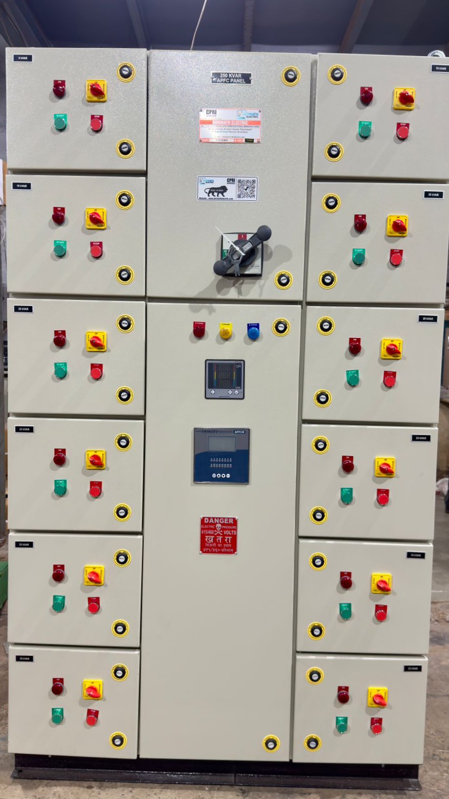 A 245 KVAR APFC (Automatic Power Factor Correction) Panel is an electrical control panel used to improve power factor in industrial and commercial installations. It helps reduce power losses, avoids penalties from electricity boards, and increases the efficiency of the electrical system.